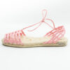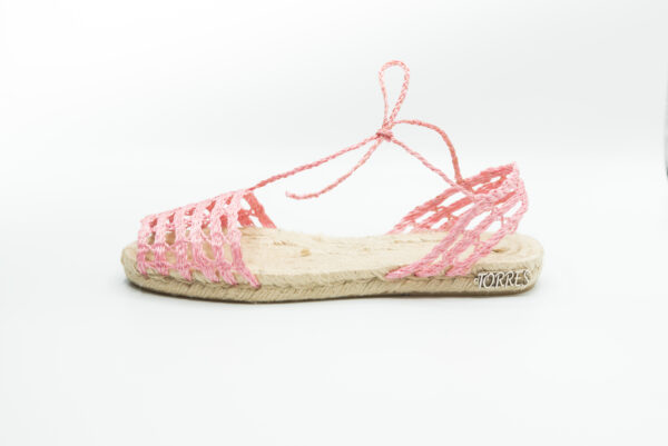 PlanasEspardenyes planas caladas hechas artesanalmente con fibra natural de pitra teñida en rosa. Suela de yute con una base especial para aumentar su durabilidad.