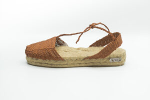 PlanasEspardenyes planas caladas hechas artesanalmente con fibra natural de pitra teñida en rosa. Suela de yute con una base especial para aumentar su durabilidad.